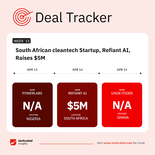 Refiant AI, a South African cleantech startup, raised $5 million in seed funding from VoLo Earth Ventures. (Apr 14)