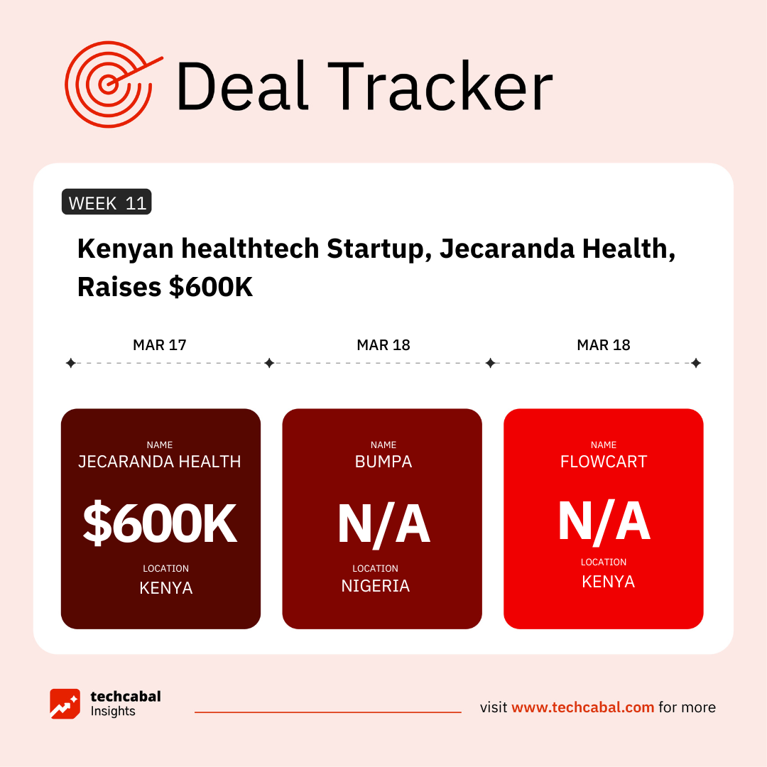 Jacaranda Health, a Kenyan healthtech startup, secured $600 thousand in funding from Swedfund. (Mar 17)