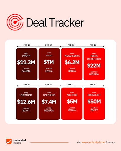 - Flextock, an Egyptian logistics startup, raised $12.6 million in a series A funding round led by TLcom Capital, with participation from Conjunction Capital, Capria Ventures, and other strategic investors. (Feb 17)