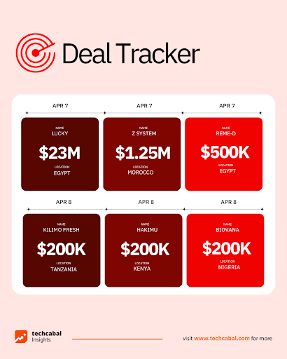 - Biovana, a Nigerian healthtech startup, raised $200,000 in pre-seed funding from Madica. (Apr 8)